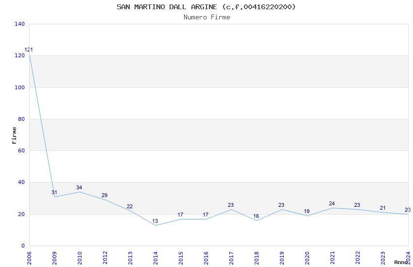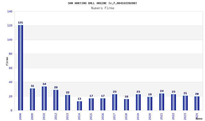 | Anno | Firme | Importi | Media | Naz. | Reg. | Prov. | Comu. |