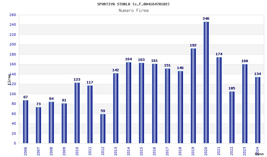 | 2024 | 134 | 8.221,51 | 61,35 | 6.196 | 167 | 122 | 97 |