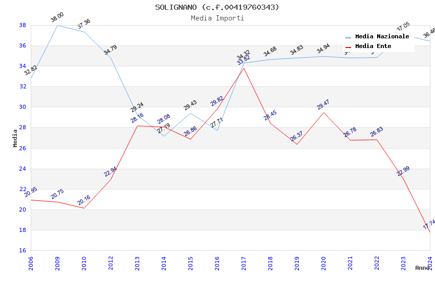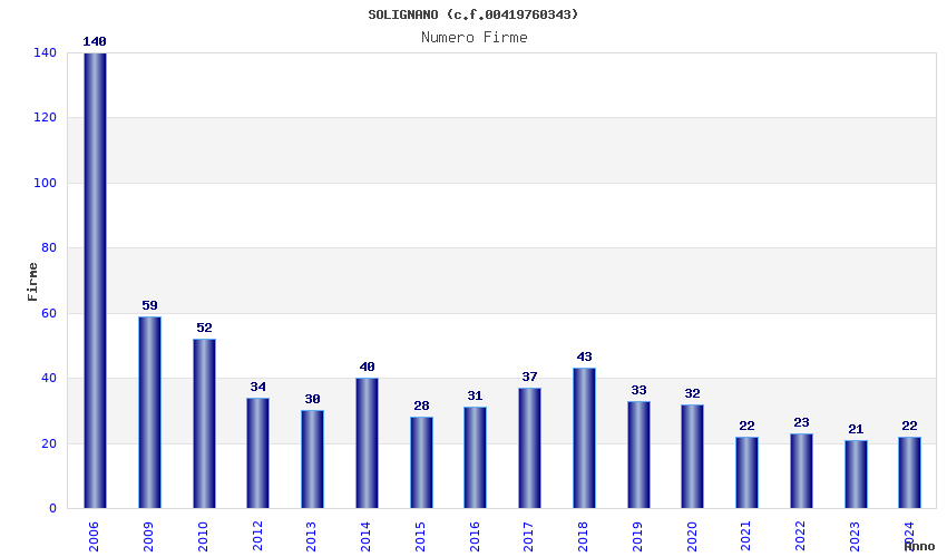 | Anno | Firme | Importi | Media | Naz. | Reg. | Prov. | Comu. |