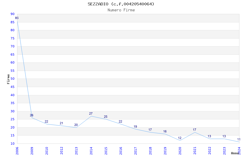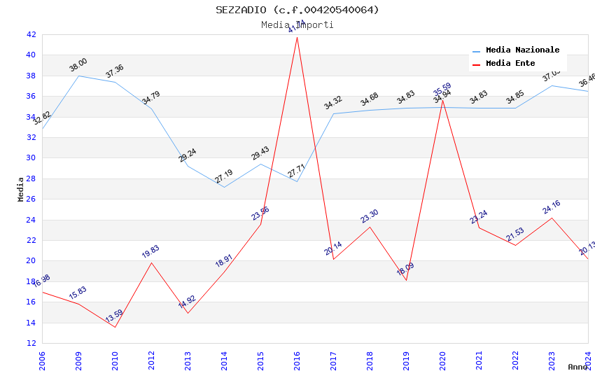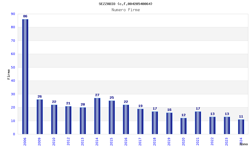 | Anno | Firme | Importi | Media | Naz. | Reg. | Prov. | Comu. |