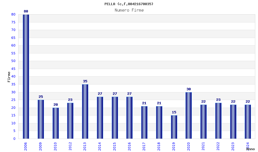 | Anno | Firme | Importi | Media | Naz. | Reg. | Prov. | Comu. |