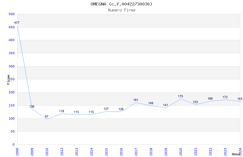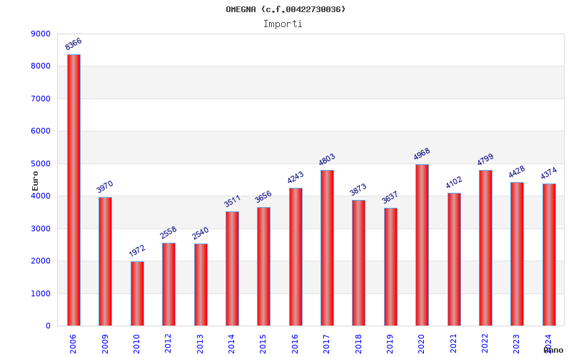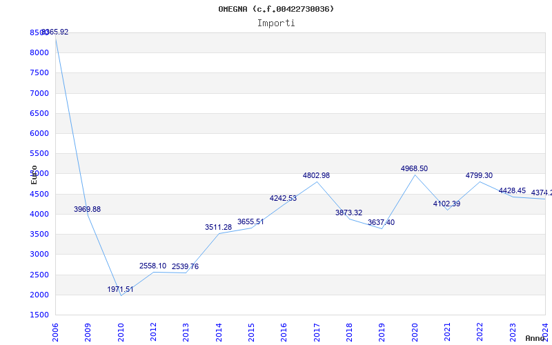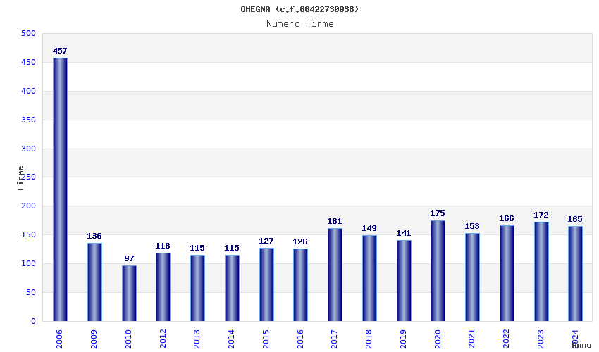 | Anno | Firme | Importi | Media | Naz. | Reg. | Prov. | Comu. |