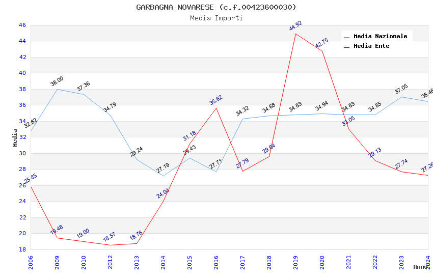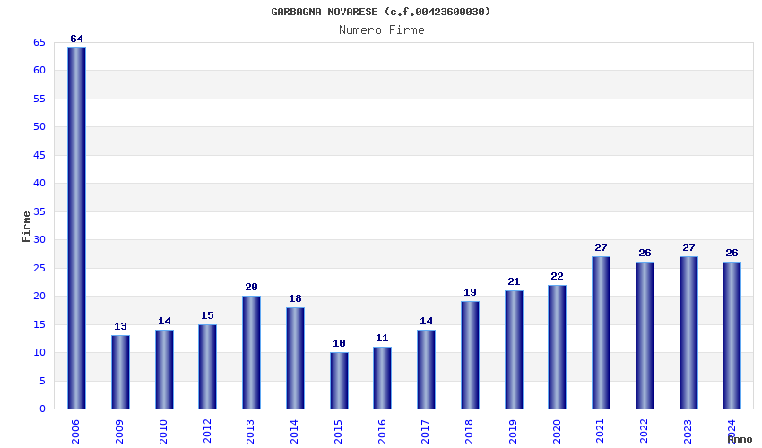 | Anno | Firme | Importi | Media | Naz. | Reg. | Prov. | Comu. |