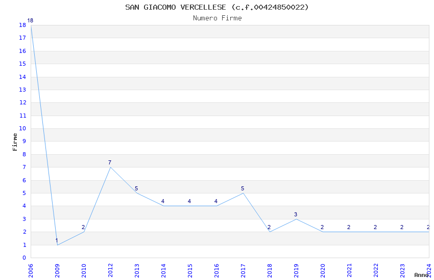 | 2006 | 18 | 224,73 | 12,49 | 26.357 | 2.763 | 134 | 1 |