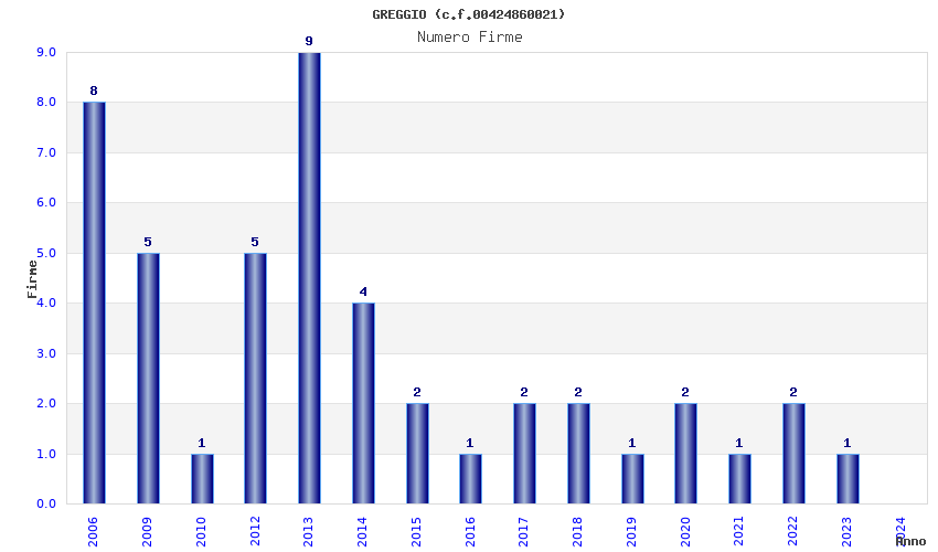 | Anno | Firme | Importi | Media | Naz. | Reg. | Prov. | Comu. |