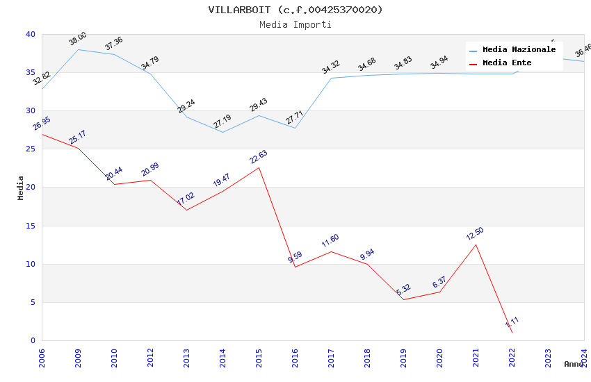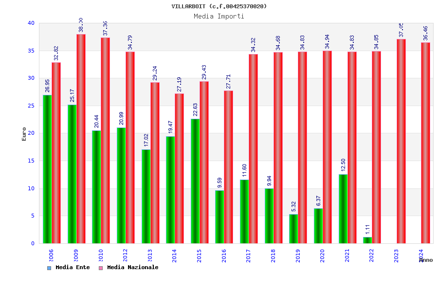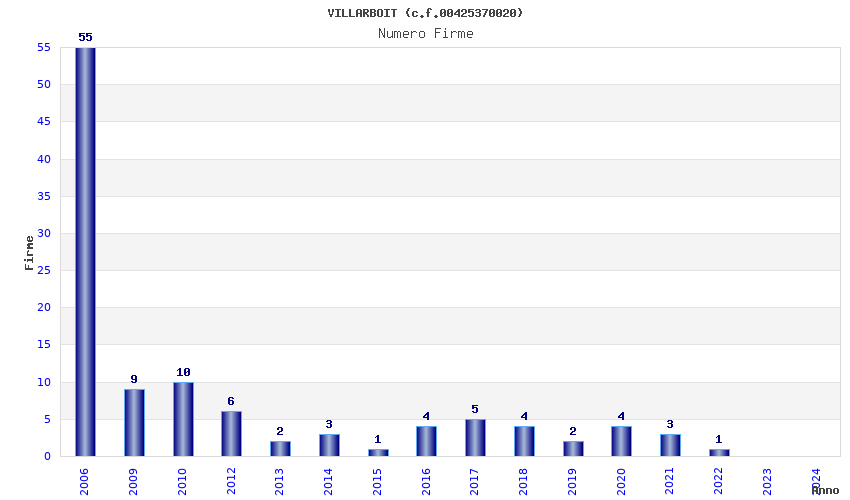 | Anno | Firme | Importi | Media | Naz. | Reg. | Prov. | Comu. |