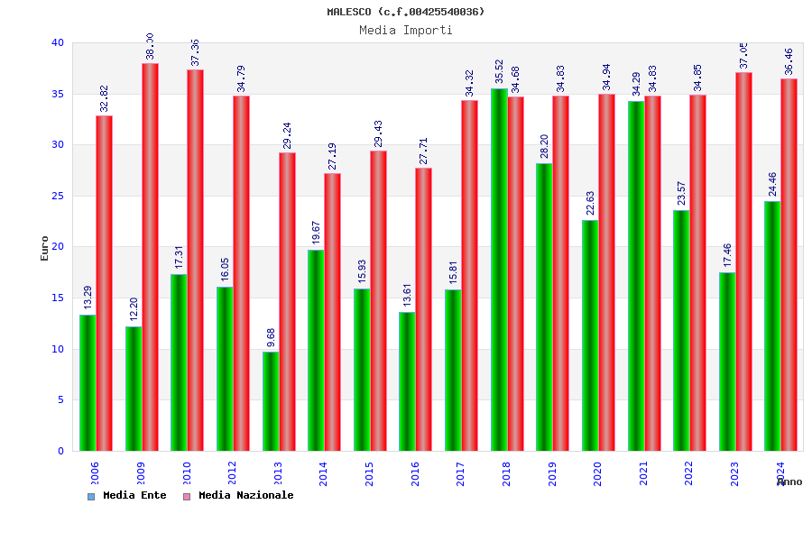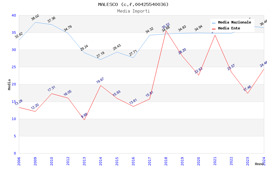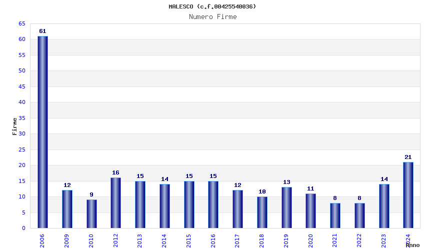 | Anno | Firme | Importi | Media | Naz. | Reg. | Prov. | Comu. |