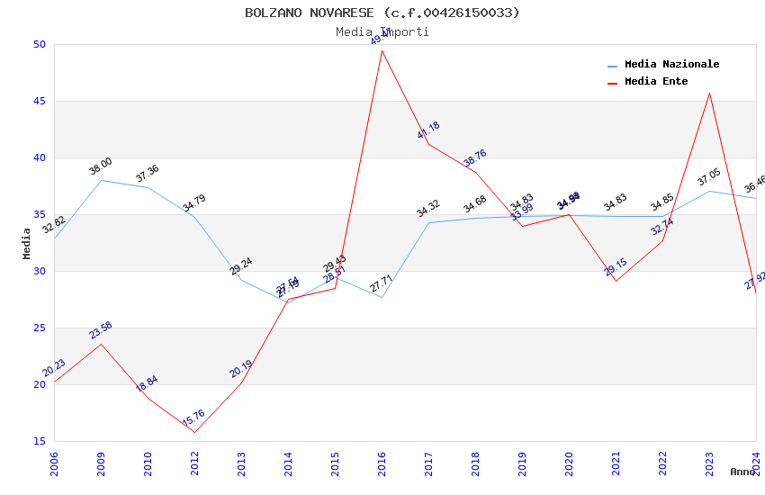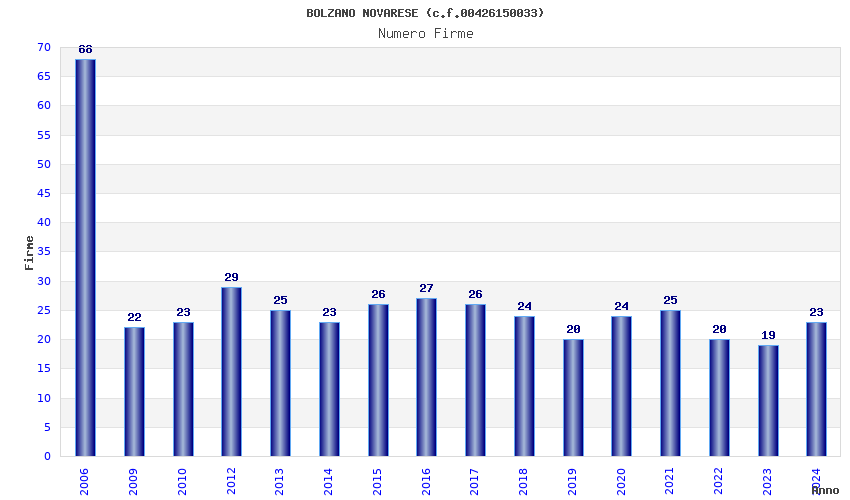 | Anno | Firme | Importi | Media | Naz. | Reg. | Prov. | Comu. |