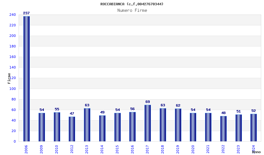 Anno Firme Importi Media Naz. Reg. Prov. Comu.