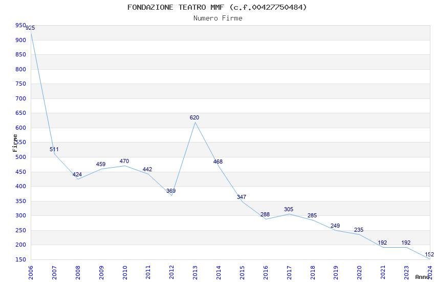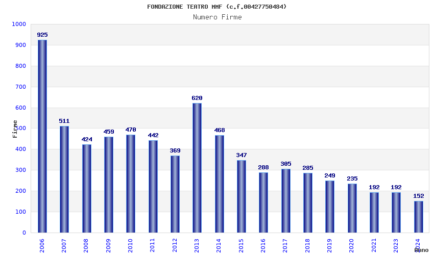 | Anno | Firme | Importi | Media | Naz. | Reg. | Prov. | Comu. |