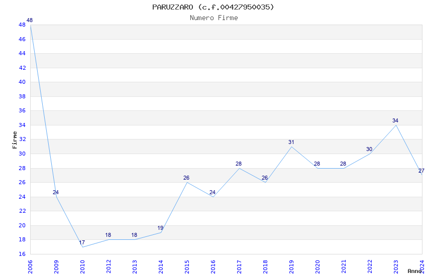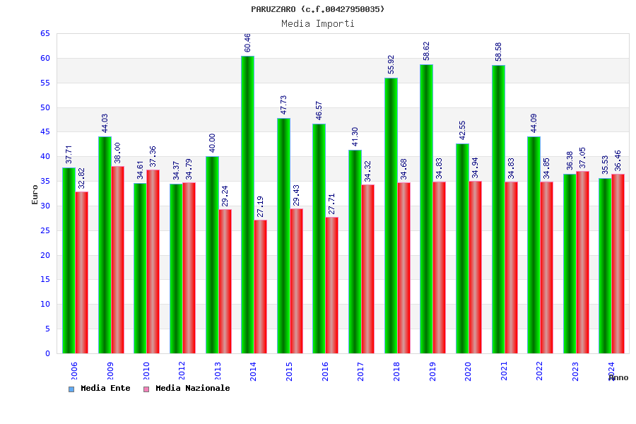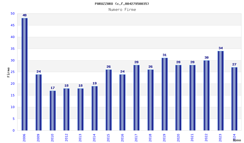 | Anno | Firme | Importi | Media | Naz. | Reg. | Prov. | Comu. |