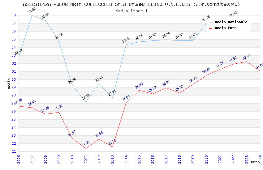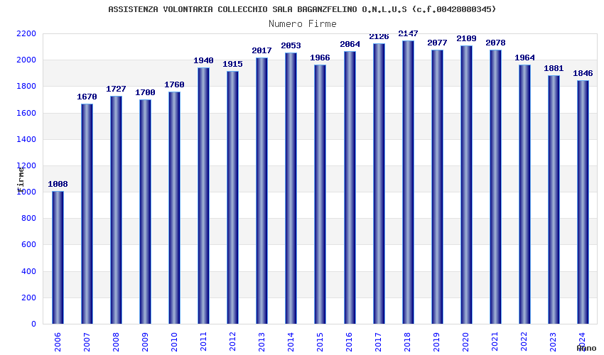 | Anno | Firme | Importi | Media | Naz. | Reg. | Prov. | Comu. |