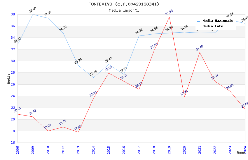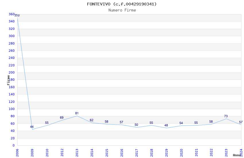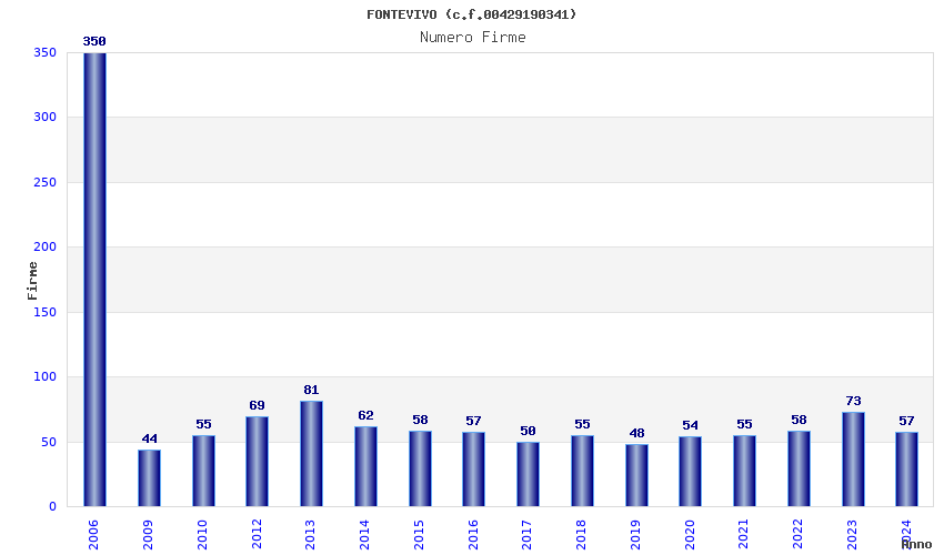 | Anno | Firme | Importi | Media | Naz. | Reg. | Prov. | Comu. |