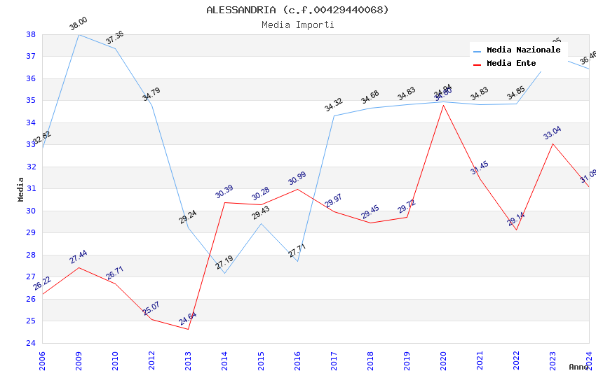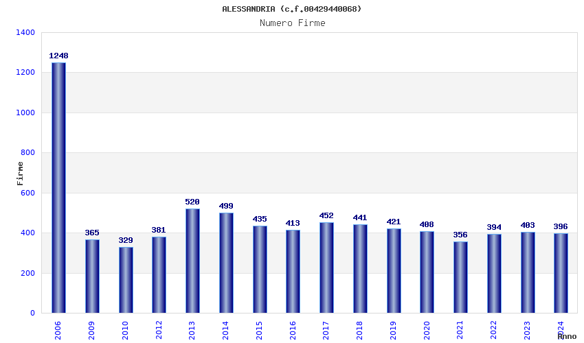 | Anno | Firme | Importi | Media | Naz. | Reg. | Prov. | Comu. |