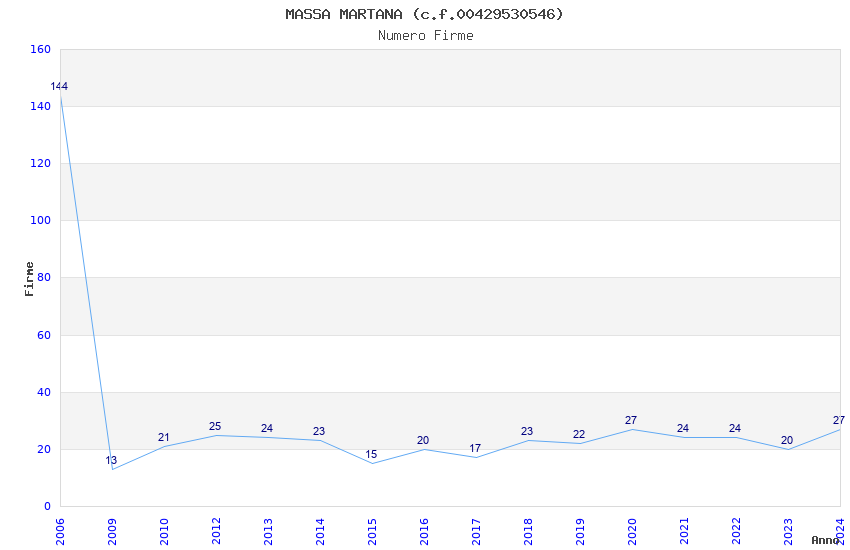 | 2020 | 27 | 684,17 | 25,34 | 42.471 | 616 | 495 | 3 |