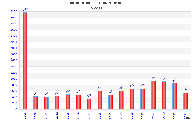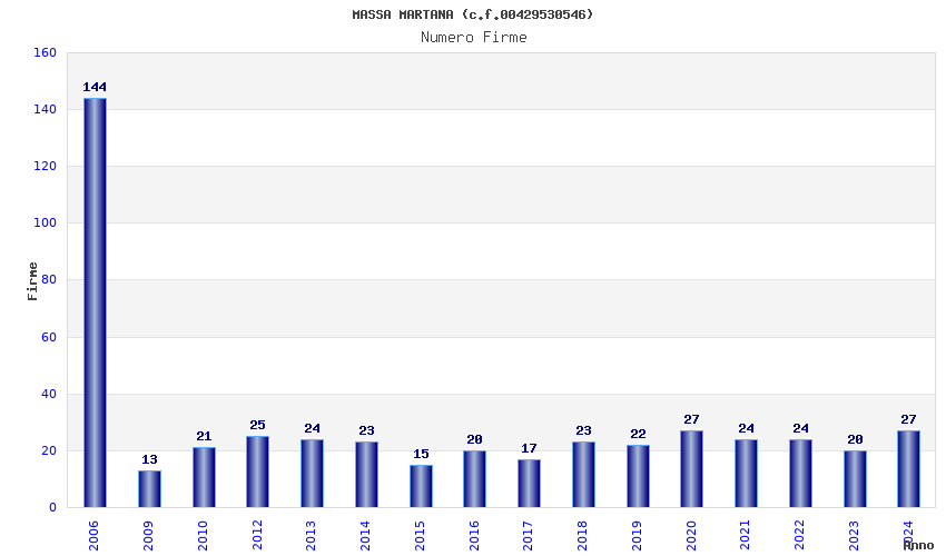 | Anno | Firme | Importi | Media | Naz. | Reg. | Prov. | Comu. |