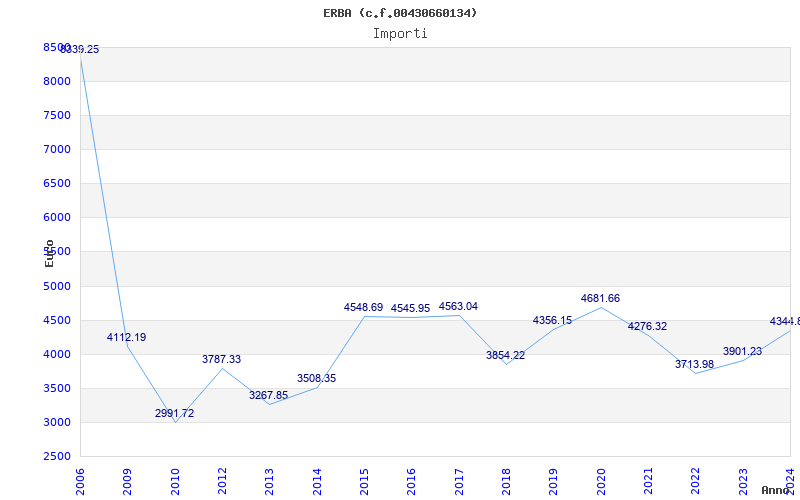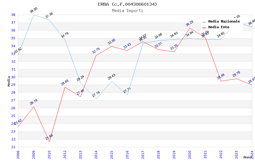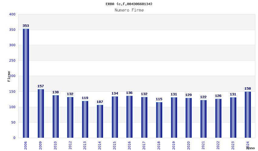 | Anno | Firme | Importi | Media | Naz. | Reg. | Prov. | Comu. |