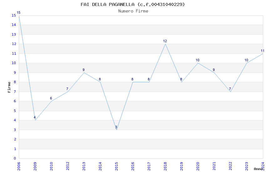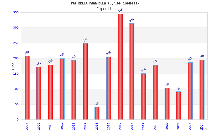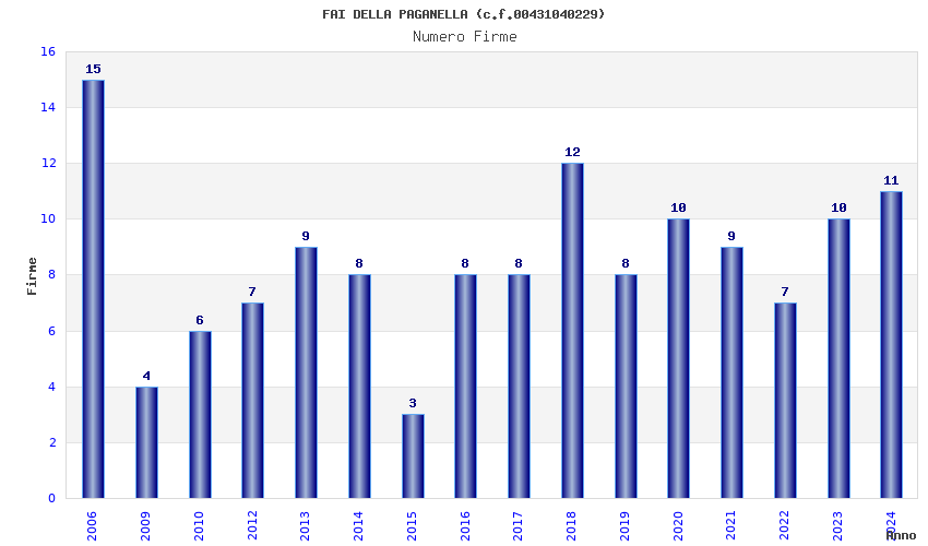 | Anno | Firme | Importi | Media | Naz. | Reg. | Prov. | Comu. |