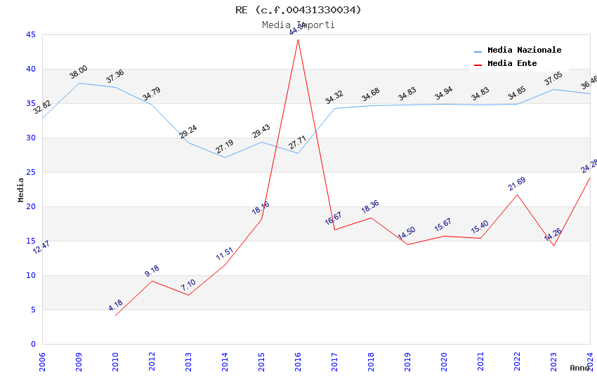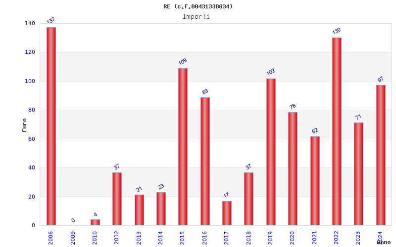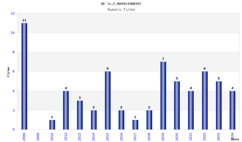 | Anno | Firme | Importi | Media | Naz. | Reg. | Prov. | Comu. |