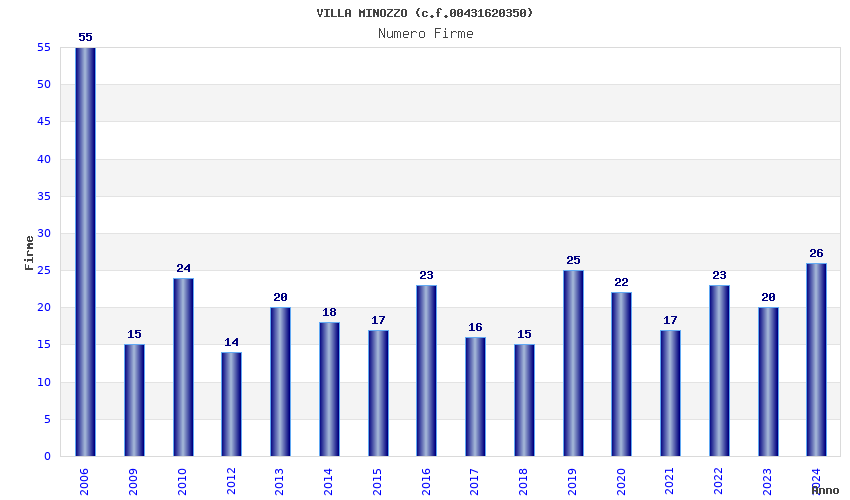 | Anno | Firme | Importi | Media | Naz. | Reg. | Prov. | Comu. |