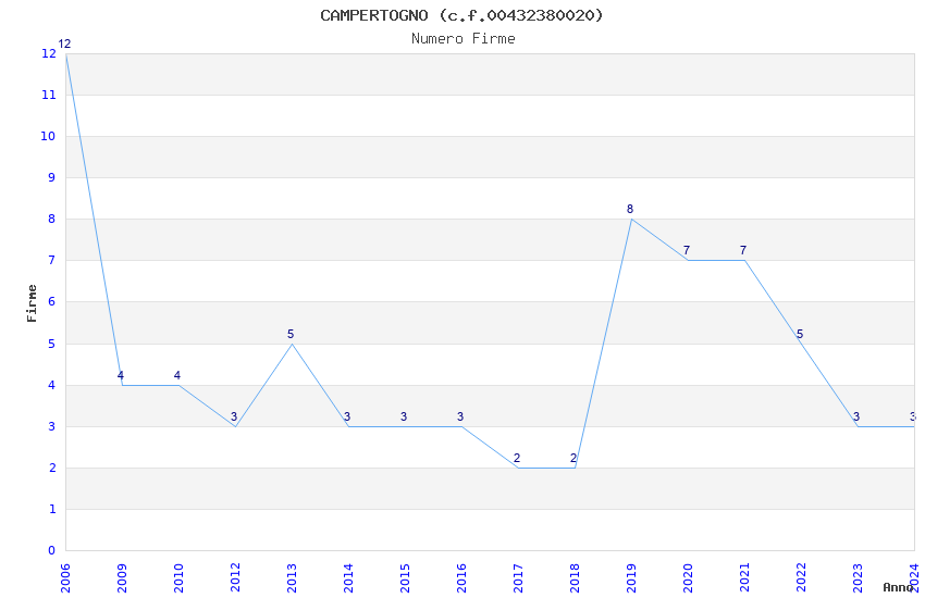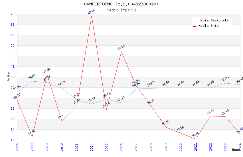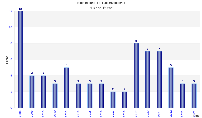 | Anno | Firme | Importi | Media | Naz. | Reg. | Prov. | Comu. |