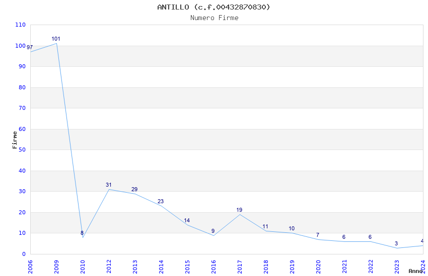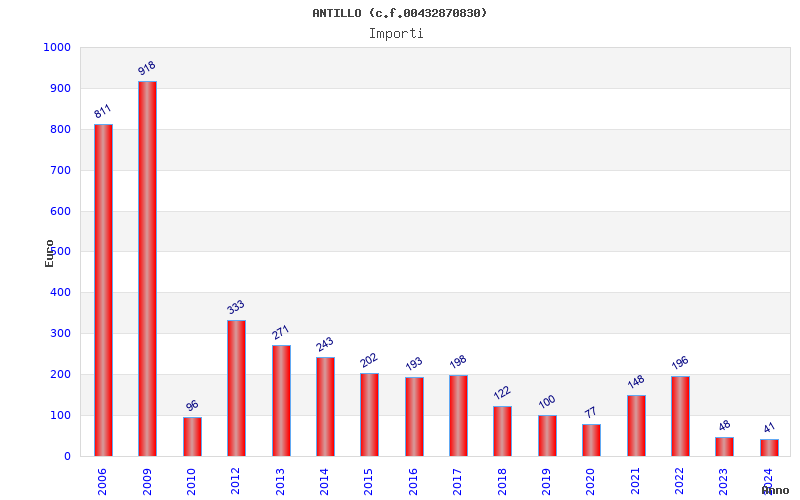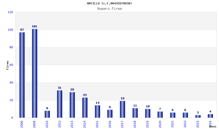 | Anno | Firme | Importi | Media | Naz. | Reg. | Prov. | Comu. |