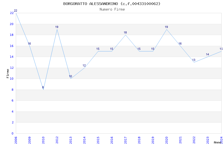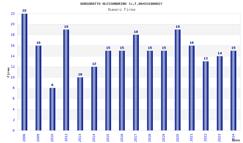| Anno | Firme | Importi | Media | Naz. | Reg. | Prov. | Comu. |