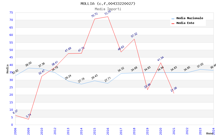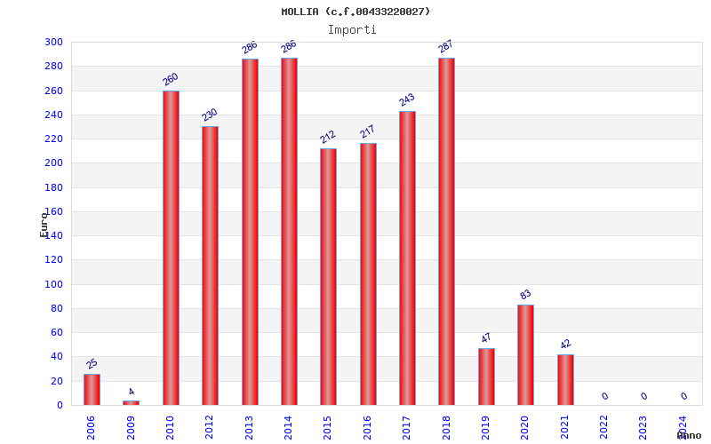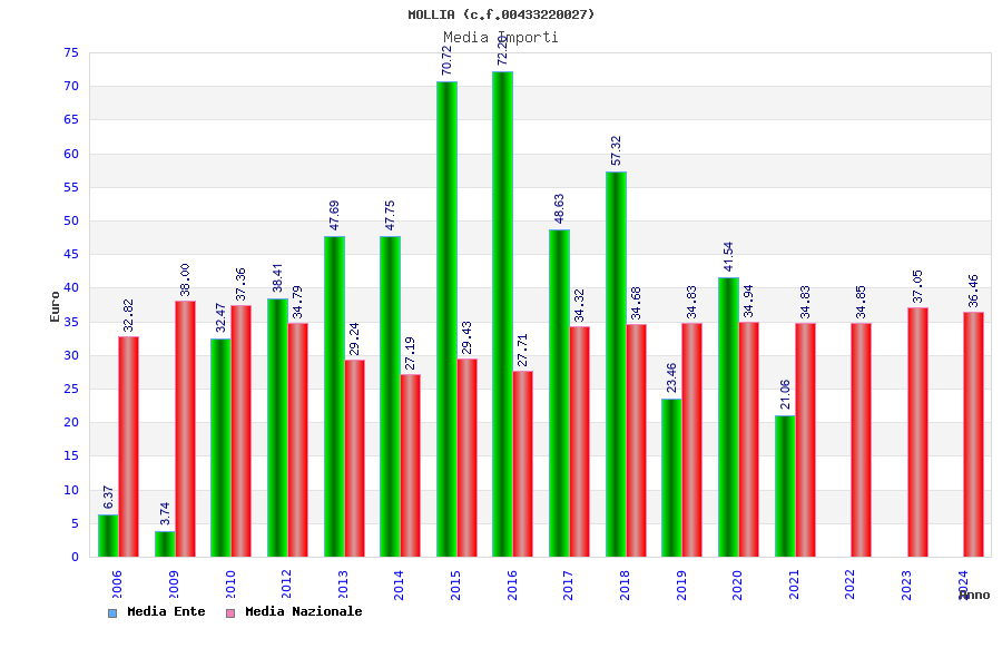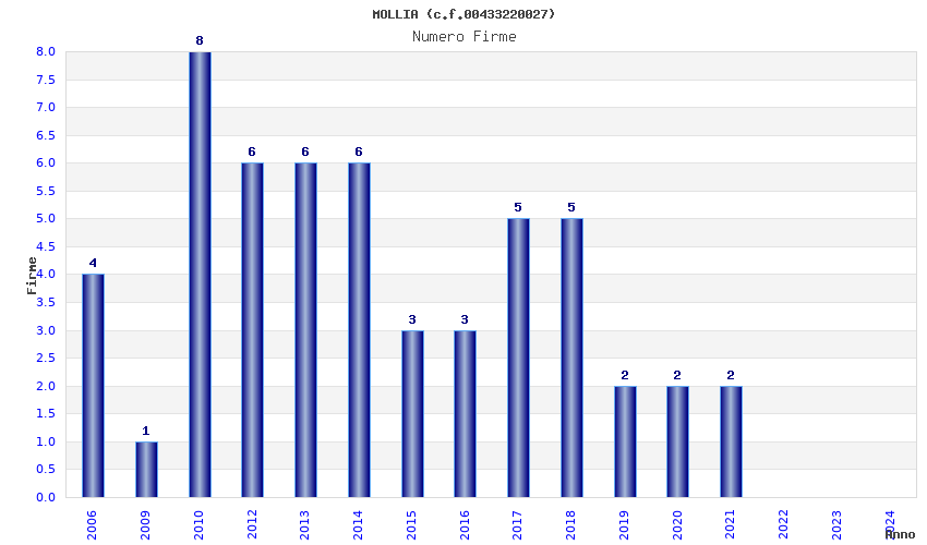 | Anno | Firme | Importi | Media | Naz. | Reg. | Prov. | Comu. |