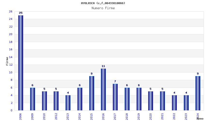 Anno Firme Importi Media Naz. Reg. Prov. Comu.