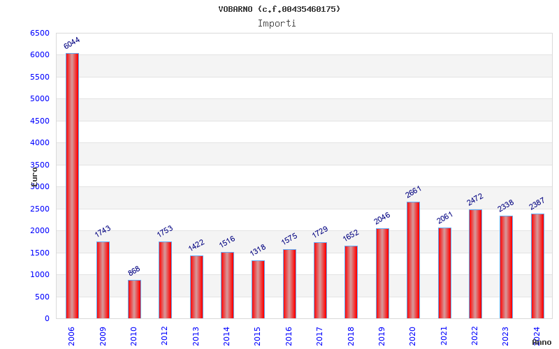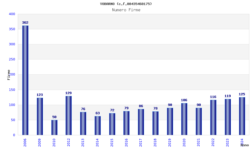 | Anno | Firme | Importi | Media | Naz. | Reg. | Prov. | Comu. |