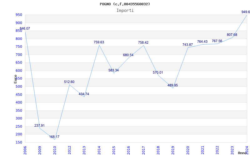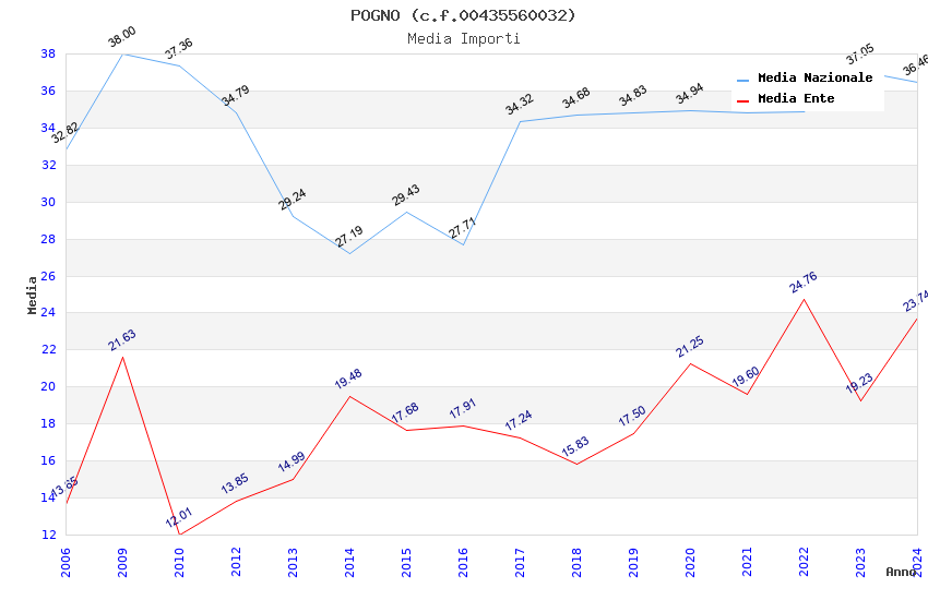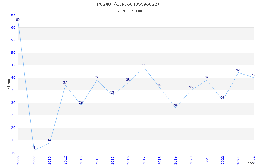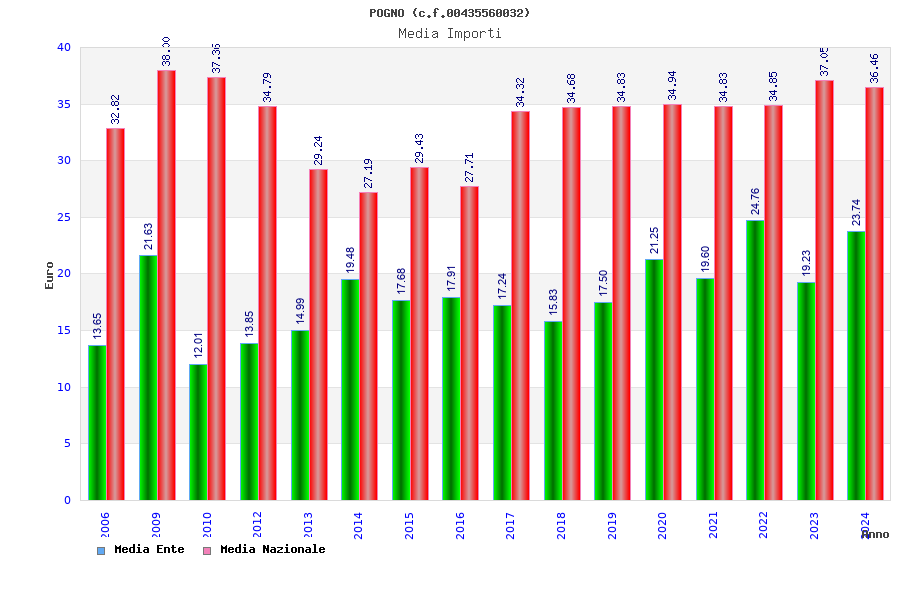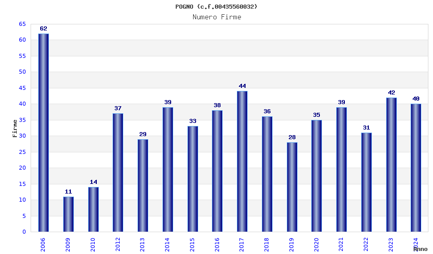 | Anno | Firme | Importi | Media | Naz. | Reg. | Prov. | Comu. |