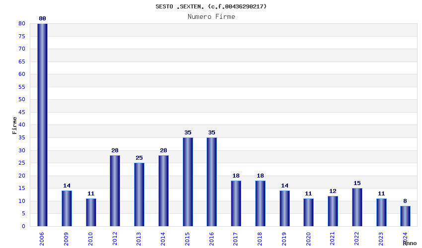 | Anno | Firme | Importi | Media | Naz. | Reg. | Prov. | Comu. |