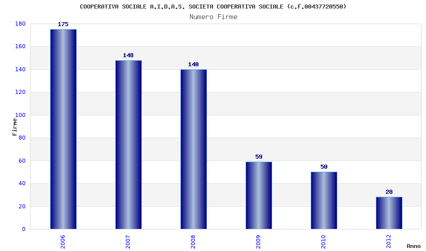 | Anno | Firme | Importi | Media | Naz. | Reg. | Prov. | Comu. |