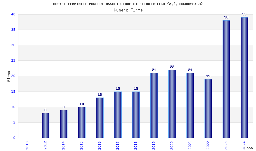 | 2019 | 21 | 832,46 | 39,64 | 38.462 | 2.381 | 245 | 5 |