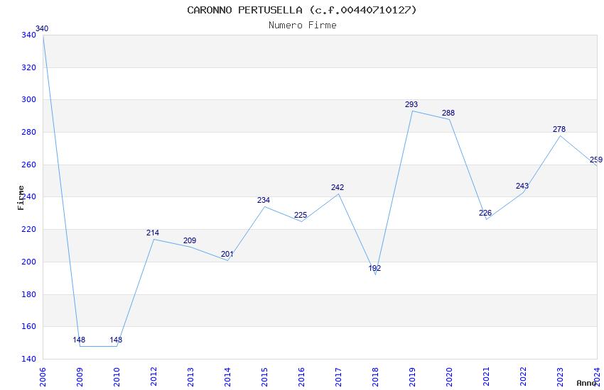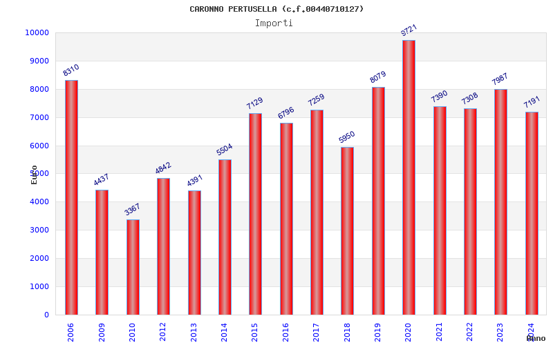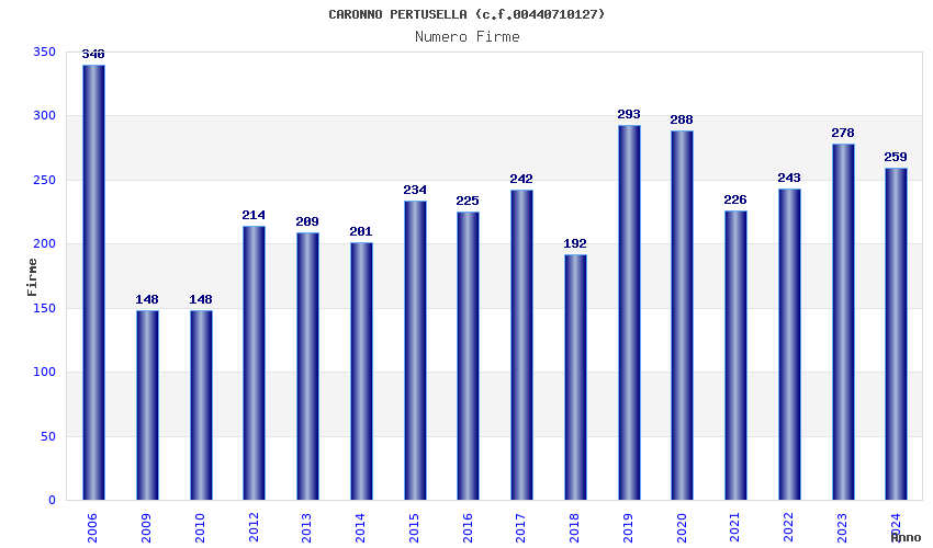 | Anno | Firme | Importi | Media | Naz. | Reg. | Prov. | Comu. |