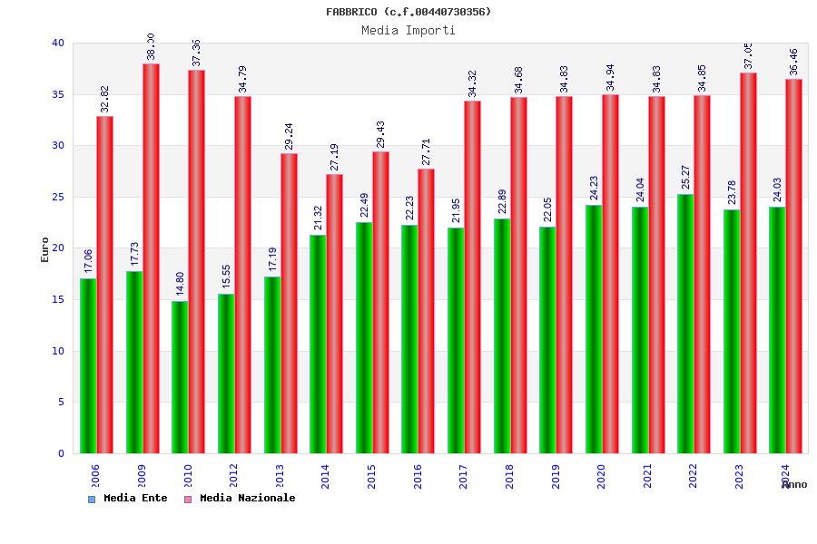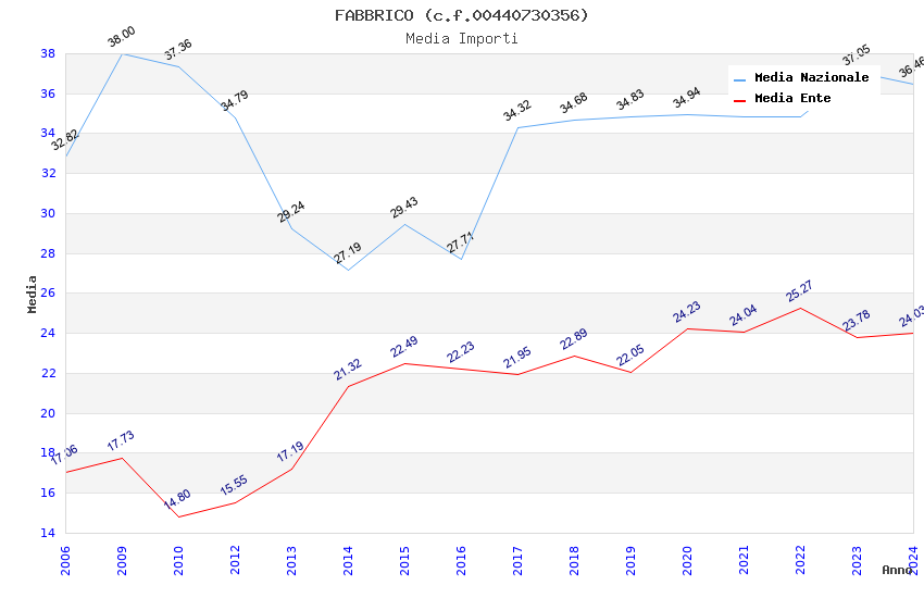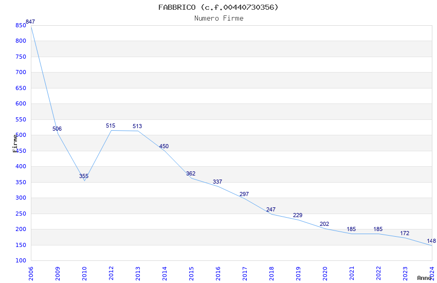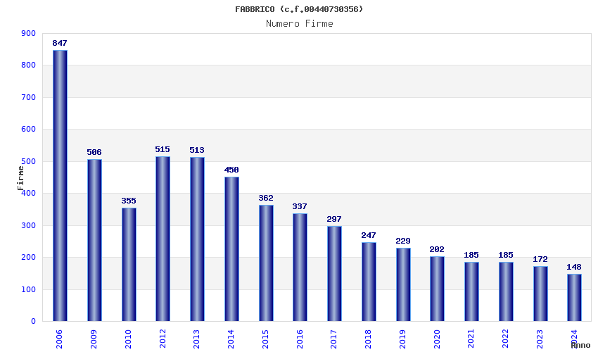 | Anno | Firme | Importi | Media | Naz. | Reg. | Prov. | Comu. |