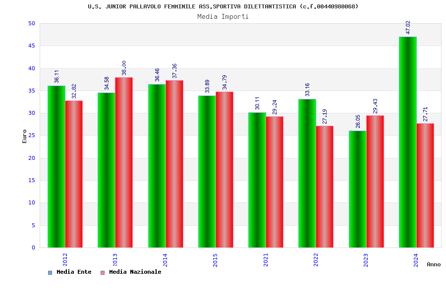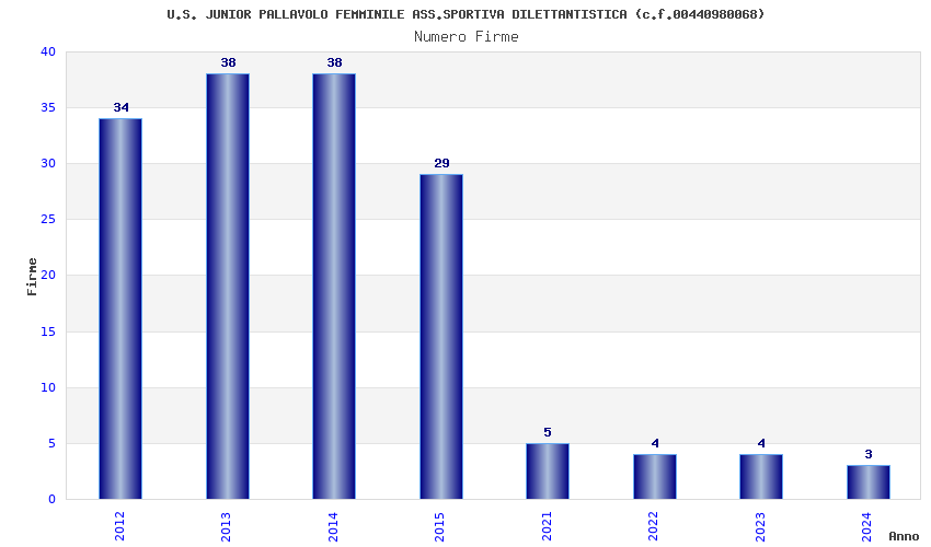 | Anno | Firme | Importi | Media | Naz. | Reg. | Prov. | Comu. |
