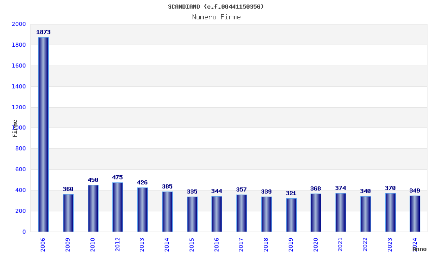| Anno | Firme | Importi | Media | Naz. | Reg. | Prov. | Comu. |