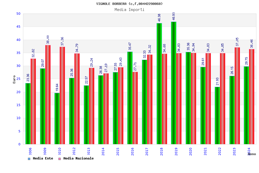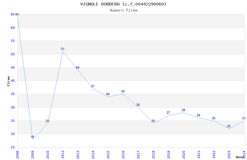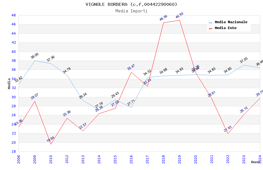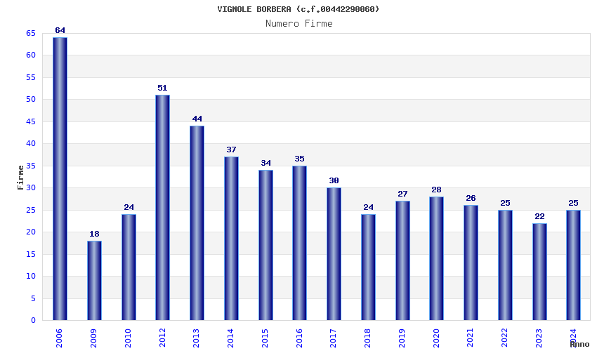 | Anno | Firme | Importi | Media | Naz. | Reg. | Prov. | Comu. |