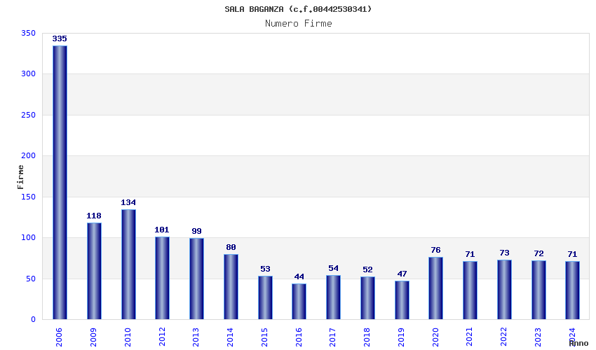 Anno Firme Importi Media Naz. Reg. Prov. Comu.