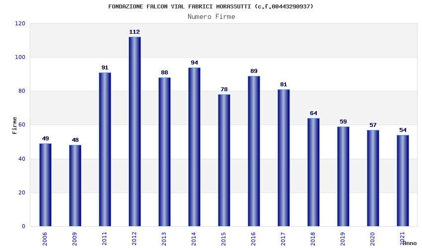 | Anno | Firme | Importi | Media | Naz. | Reg. | Prov. | Comu. |