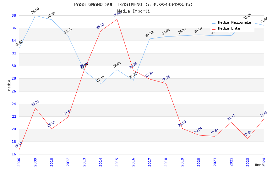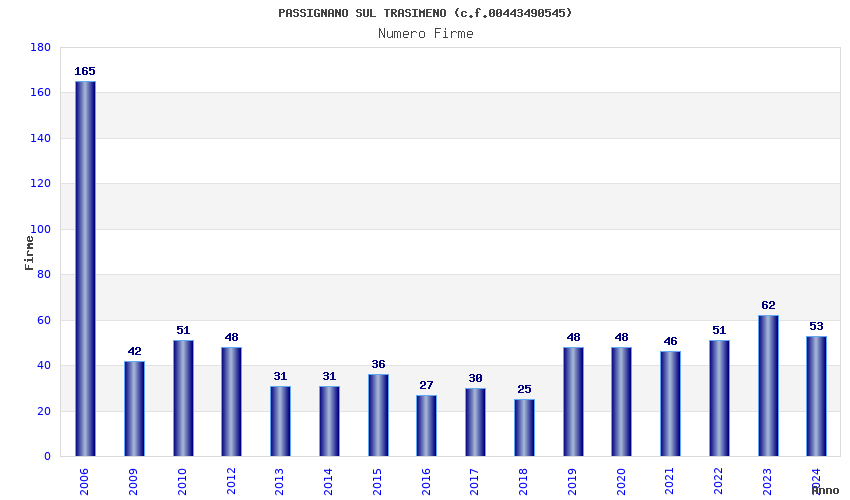 | Anno | Firme | Importi | Media | Naz. | Reg. | Prov. | Comu. |