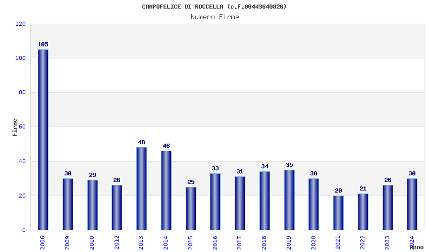 | Anno | Firme | Importi | Media | Naz. | Reg. | Prov. | Comu. |