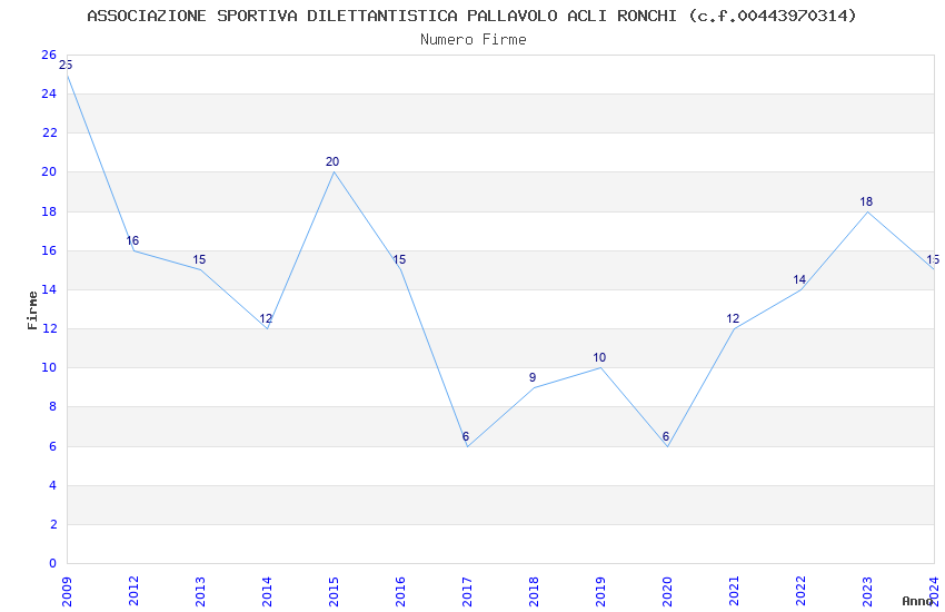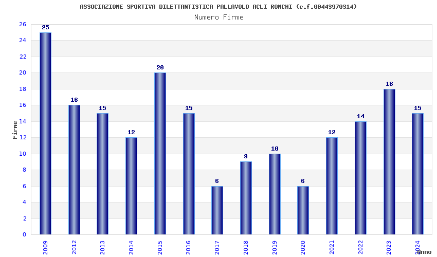 | Anno | Firme | Importi | Media | Naz. | Reg. | Prov. | Comu. |