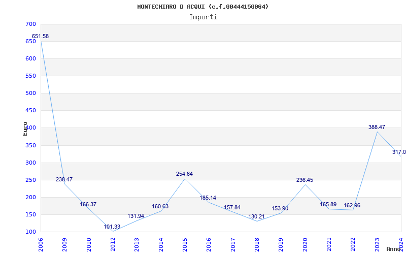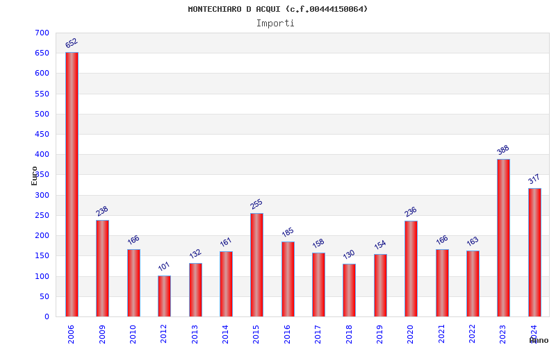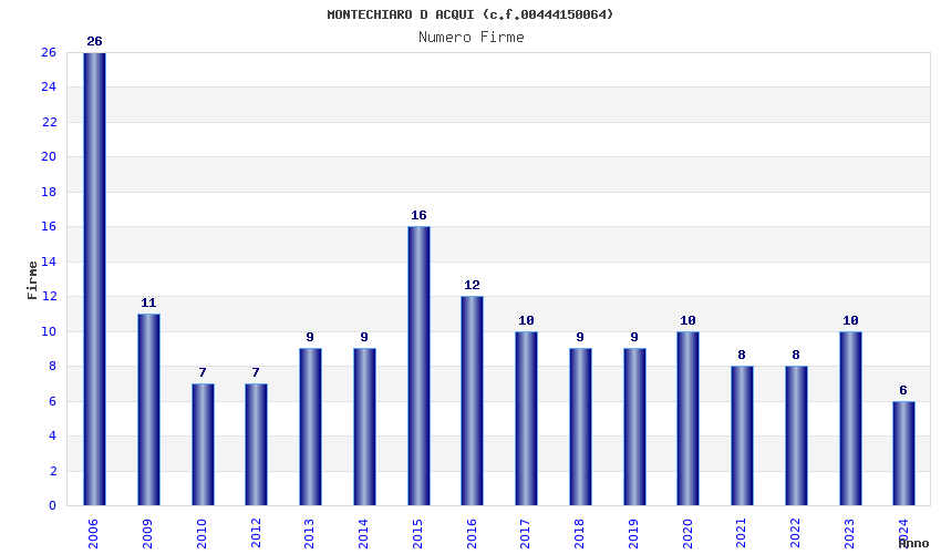 | Anno | Firme | Importi | Media | Naz. | Reg. | Prov. | Comu. |