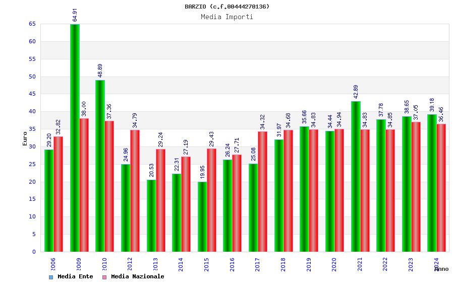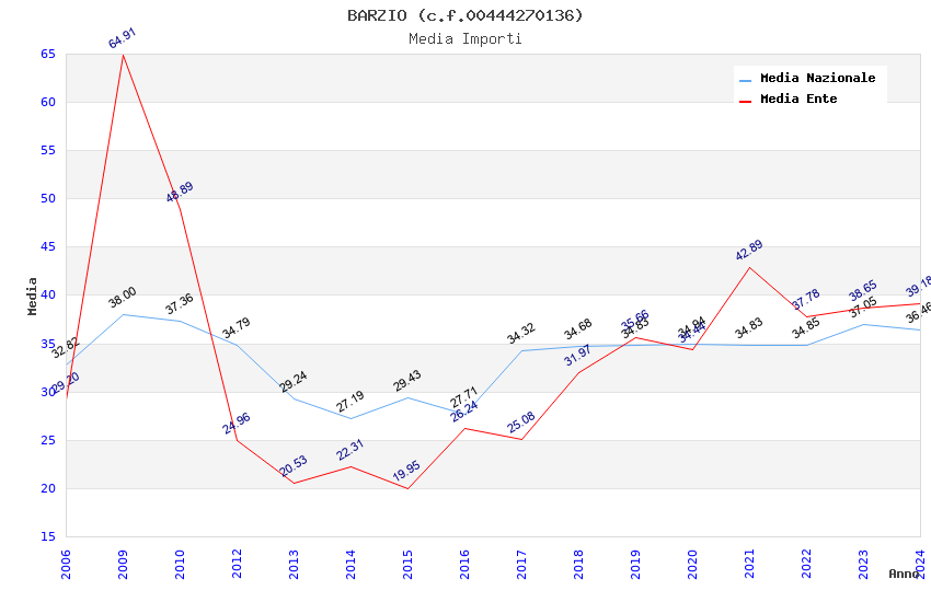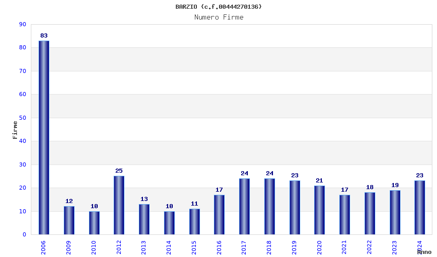 | Anno | Firme | Importi | Media | Naz. | Reg. | Prov. | Comu. |