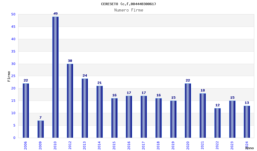 Anno Firme Importi Media Naz. Reg. Prov. Comu.