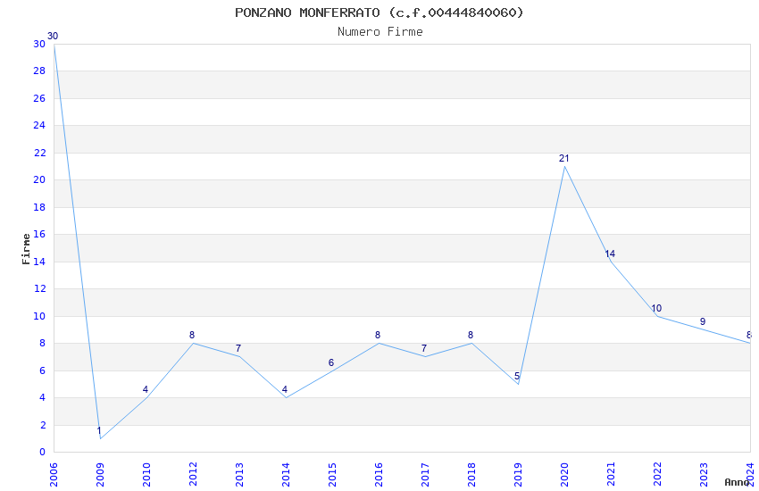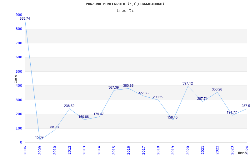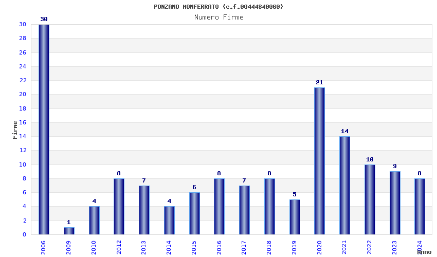 | Anno | Firme | Importi | Media | Naz. | Reg. | Prov. | Comu. |