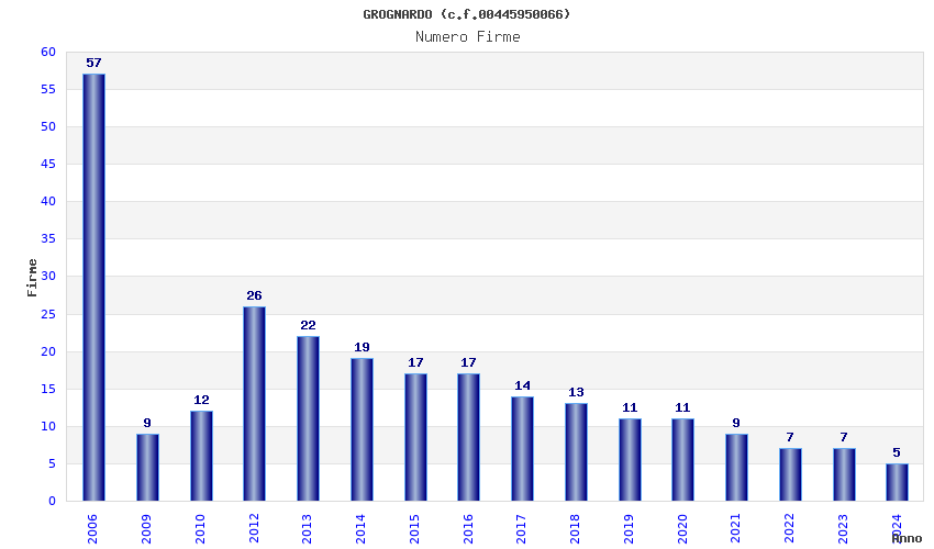 | Anno | Firme | Importi | Media | Naz. | Reg. | Prov. | Comu. |