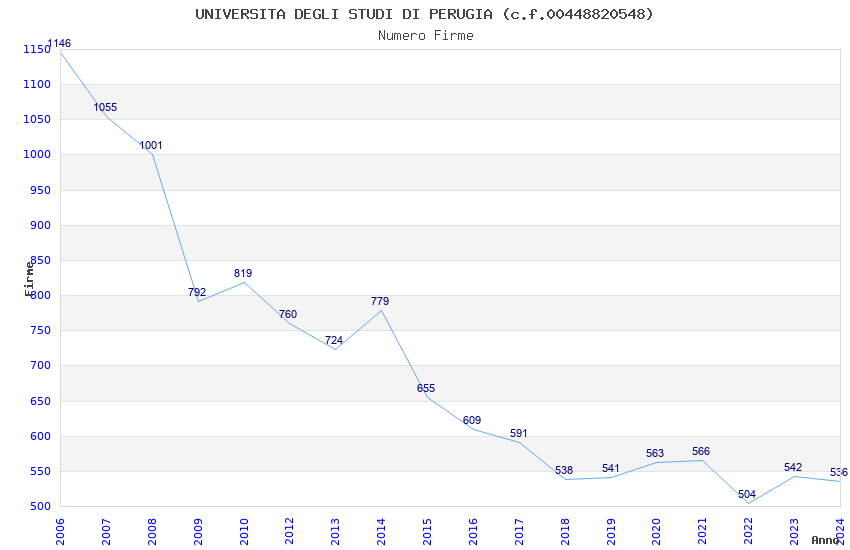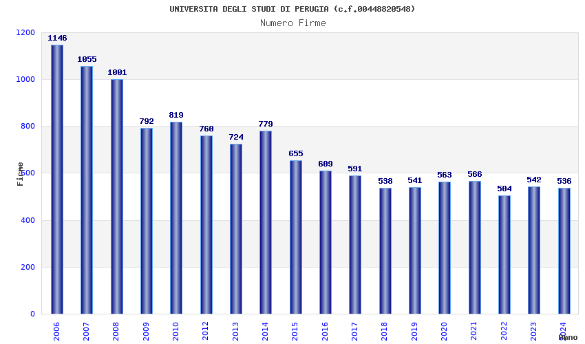 | Anno | Firme | Importi | Media | Naz. | Reg. | Prov. | Comu. |